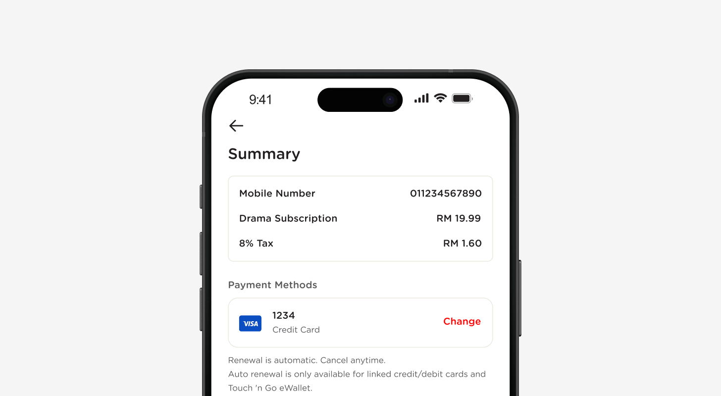 If renewal fails, your Drama subscription will expire at the end of the current subscription cycle, unless otherwise determined by Tune Talk.